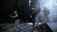 Sergeant Greer feuert auf die angreifenden Drohnen. | |||||||||||