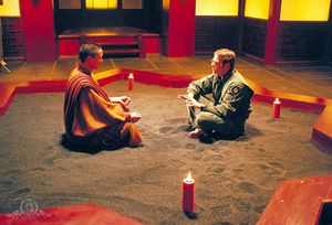 Im Tempel hat sich nun auch Bra'tac in dem schwarzem Sand niedergelassen. Der Mönch sagt ihm, dass er seinen Symbionten entfernen muss, um Einheit mit Oma Desala zu erlangen, da dieser nur Dunkelheit kenne. Daniel und Bra'tac wissen jedoch nicht, was Oma Desala ist und fragen präziser danach. Doch der Mönch redet weiterhin verschlüsselt und sagt, dass er für den Tod bereit sein muss, um Oma Desala zu empfangen, was Bra'tac aber noch nicht ist. Danach verlässt auch er den Tempel und macht sich mit Teal'c bereit für den Kampf. Daniel redet weiterhin mit dem Mönch. Er trage zwar kein Übel, aber eine Last mit sich herum. Der Mönch zeigt ihm Zeichen an den Wänden des Tempels und erzählt weiter über Oma Desala und benutzt das Wort "Mutter". Daniel denkt, dass es übersetzt Mutter Natur heißen muss. Im nächsten Augenblick wendet sich der Mönch dem Kind zu. Er fragt, warum er es sucht, obwohl es nicht sein Kind ist. Daniel antwortet, dass er seiner verstorbenen Frau versprochen hat, für das Kind zu sorgen und glaubt, dass es bei ihm sicher ist. Dann weiß auch Daniel nicht mehr, wovon er spricht. Kurze Zeit später sieht man Daniel und den Mönch vor einer Kerze sitzen, die Daniel mit Gedankenkraft nicht entzünden kann. Der Mönch fragt nach dem zweiten Grund für seine Sorge um das Kind. Er antwortet, dass er es für den Kampf gegen die Goa'uld braucht, die er verachtet. Der Mönch sagt daraufhin, dass sein Hass das Kind töten werde. Dann scheint er die Kerze allein durch Gedankenkraft entzünden zu können und fordert ihn auf, sie auszublasen. Aber erst nachdem er sie mit dem Mund ausgeblasen hat wird er darauf hingewiesen, es mit seinen Gedanken zu tun. Dann soll er seine Hand in die Flamme halten, was er auch tut. Dabei verbrennt er sich aber, was den Mönch zu der Frage veranlasst, wieso er es dennoch getan habe. Daniel antwortet, dass er dem Mönch vertraut hat. Dieser erwidert, dass er nun auch Oma Desala vertrauen soll, doch Daniel schafft es nicht.