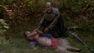 Auf dem Planeten befiehlt O'Neill SG-2 das Tor zu bewachen und sich alle 30 Minuten zu melden, während sich SG-1 mit Bra'tac auf die Suche nach dem Tempel macht. Doch schon bald macht Bra'tac anhand von Fußspuren eine Entdeckung: Es waren vor kurzem bereits acht Jaffa auf dem Planeten. Unterwegs äußert sich Bra'tac besorgt wegen des eventuell kurz bevorstehenden Abschieds und der Prim'tah. Kurze Zeit später stoßen sie erneut auf Fußspuren, wonach sechs von den Jaffa Halt gemacht haben, die beiden anderen fortgegangen seien und danach eine Frau kam. Bra'tac deutet daraus auf einen Kampf zwischen ihnen und einer anschließenden Flucht in den Wald. Möglicherweise war die Frau die Priesterin. Im Wald findet Daniel zwei Jaffa-Leichen, die völlig verkohlt ist. Danach werden die anderen sechs Jaffa-Leichen gefunden. Teal'c kennt keine Waffe, die so einen Schaden anrichten könnte. Doch gleich darauf wird SG-1 auch schon von Bra'tac gerufen, welcher einige Meter entfernt die Leiche einer Priesterin gefunden hat, welche erst vor kurzem erschossen wurde, wahrscheinlich auf der Flucht. Bra'tac deutet daraus erneut das Geschehen: Die Priesterin wurde von zwei Jaffa zum Sternentor eskortiert, bis sie auf die sechs weiteren Jaffa trafen. Sie erkannte die Gefahr und floh, dabei wurde sie erschossen. Danach wurden die anderen getötet. Bra'tac ist sich da sehr sicher. Sie trug das Kind auf ihren Armen, da sie nicht gefesselt war. Bei dem Angriff sollte offenbar das Leben des Jungen verschont bleiben, dessen Schicksal ungeklärt ist. Das Ganze ereignete sich laut Bra'tac vor zwei Tagen. Außerdem vermuteten er und Teal'c, dass Apophis danach sehr viele Jaffa schicken würde.