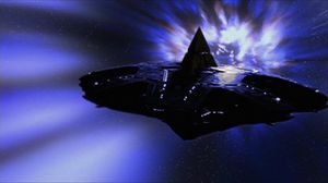 Ein Wraith-Basisschiff kommt aus dem Hyperraum.
