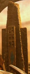 Sam untersucht den Obelisken.