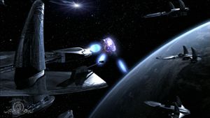 | 6 Schiffe der O'Neill-Klasse, die Daniel Jackson | 1 Replikatorenkreuzer, später sehr viele Replikatoren | ||||||||||