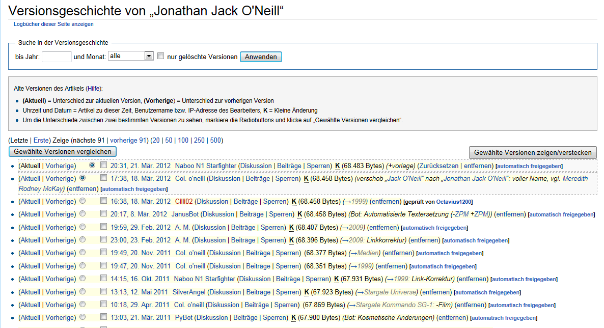 | 16:16, 23. Sep. 2011 | O'Neill an der Sprechanlage.jpg (Datei) | 31 KB | {{Information |Beschreibung = O'Neill an der Sprechanlage |Quelle = Gateworld |Urheber = MGM |Datum = |Genehmigung = |Andere Versionen = |Anmerkungen = }} | 1 | |