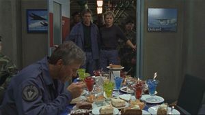 O'Neill sitzt in der Kantine und betrachtet Ausdrucke der Sondenaufzeichnungen, bevor er vom Geschmack des Kuchens abgelenkt wird, den er nebenbei zu essen beginnt. Daraufhin verlassen auch Sam und Daniel ihre Arbeit, um sich wie Teal'c zu O'Neill in die Kantine begeben, der unterdessen einen großen Tisch mit verschiedenen Speisen, vor allem Kuchen und Gelee, aufgebaut hat. Alle wundern sich über ihren intensiver werdenden Geschmackssinn und essen auch Sachen, die sie normal gar nicht mögen. Die anderen in der Kantine anwesenden Personen gucken irritiert. Dann werden sie ins Labor gerufen.