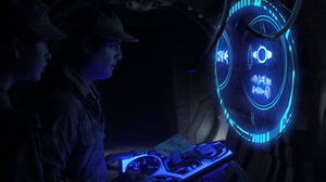 Inzwischen wird Greer von James und ihrem Teil des Suchtrupps gefunden und auf die Destiny gebracht. Eli entdeckt gerade im Raumschiff Rushs dort vergessene Brille und eine Konsole. Scott will nach 15 Minuten wieder gehen, da die Außerirdischen sie sonst entdecken und gefangen nehmen könnten. Eli sucht im holografischen Menü nach einer Karte, doch er kann die Schrift der Außerirdischen nicht lesen und weiß somit nicht, wie er zur Karte kommt.