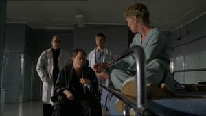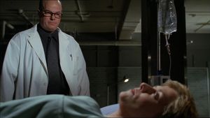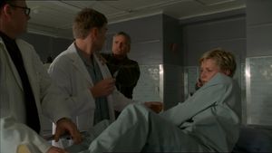Carter ist noch nicht sehr weit gekommen mit ihrem Vorhaben, die Gurte durchzusäbeln, als der Chefarzt wieder den Raum betritt. Er erzählt ihr, dass sie sehr wertvoll für die zukünftige Medizin sei, und teilt ihr mit, dass er über ihren Symbionten Jolinar[1] Bescheid weiß. Er versucht, sie dazu zu bringen, davon zu erzählen, doch kühl leugnet Carter alles und erzählt ihre übliche Cover-Story.